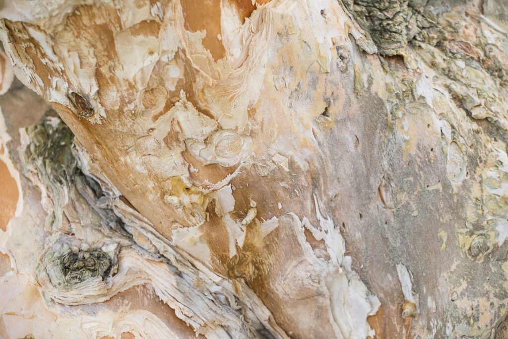 白千層樹(Melaleuca quinquenervia)原產於澳洲,尤其是在新南威爾士州和昆士蘭州的濕地和鹽沼地區,又稱紙樹,樹皮呈現薄薄的紙片狀,顧名思義,又名符其實,而英文字母排列那麼長,不容易記憶,非常有趣。