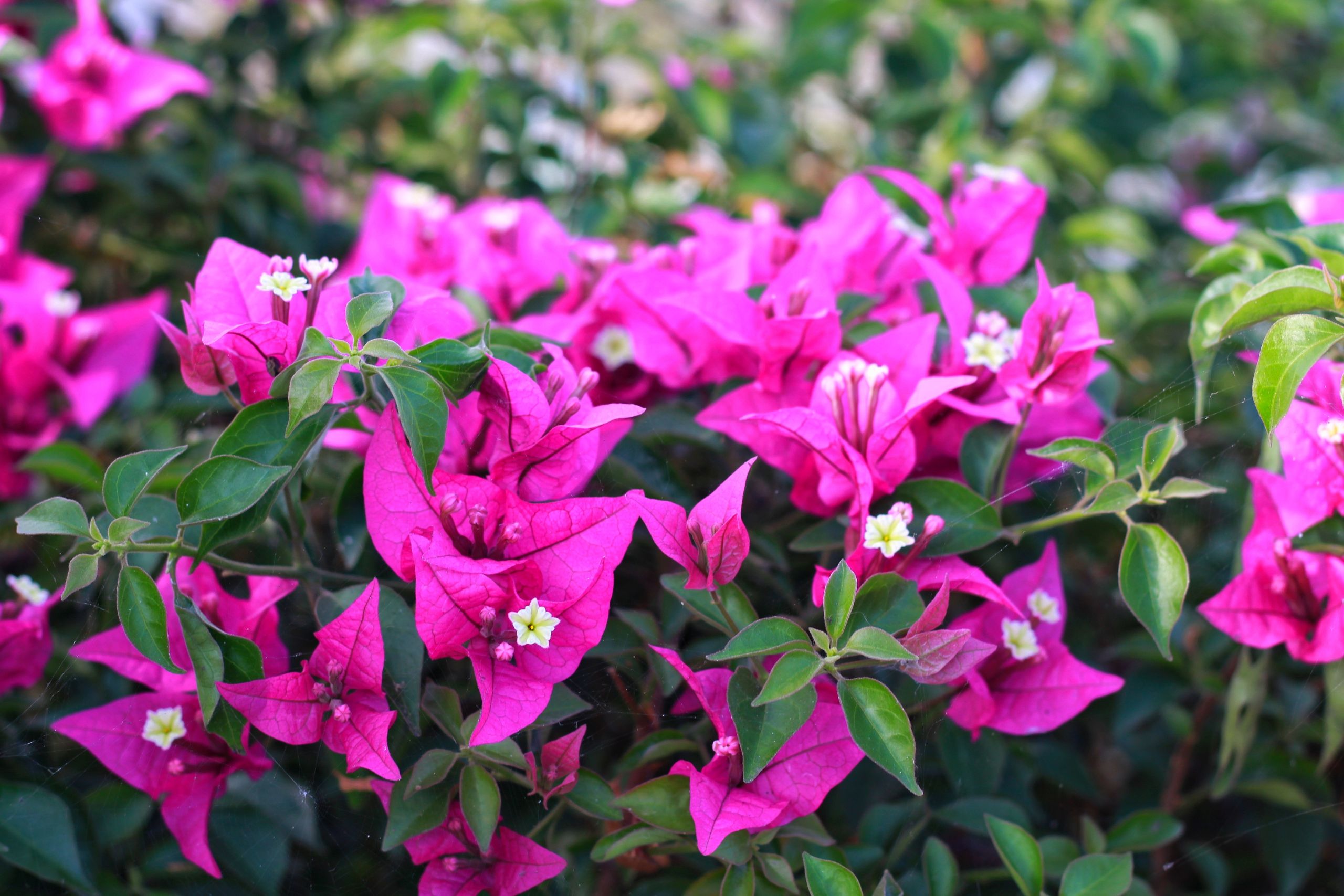 簕杜鵑(Bougainvillea spectabilis),又名葉子花,是一種常綠攀援性的灌木,可長達十米以上,原產於南美洲的巴西。它的莖腋下長有刺,小枝成藤狀,可蔓生成一大片,花期非常長,不斷綻放,它們有多種顏色,多數紅色,其次是粉紅色,白色,橙色和紫紅色,其實顏色部份並非是葉子,而是葉狀的苞片,花朵外圍是變態葉,真正的小花藏匿其中。因為非常容易用扦插法繁殖,所以在香港的公園,屋苑庭院隨處可見,生機勃勃,隨時令人眼前一亮。